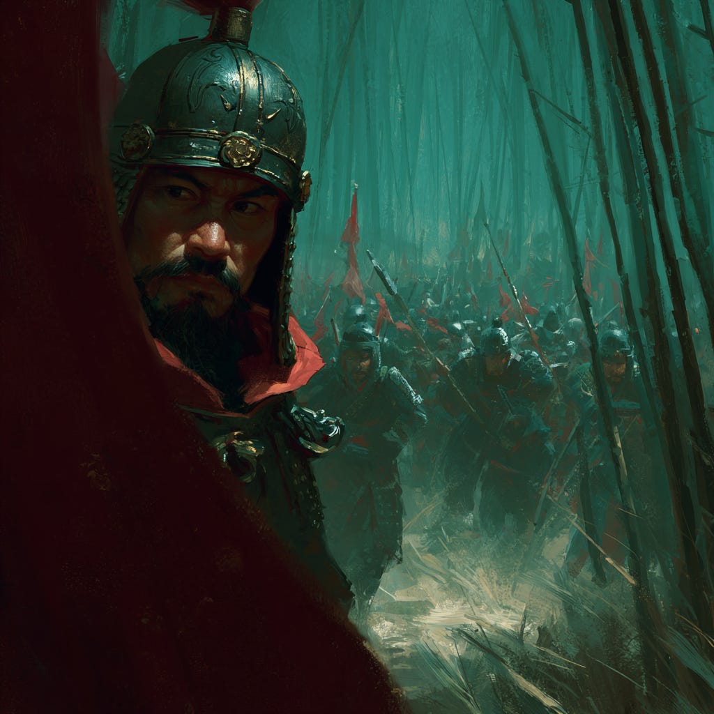 Sima Yi rode up with a massive army and saw... nothing suspicious, just Zhuge vibing with his instrument. And that’s exactly what made Sima Yi lose his shit. He knew Zhuge was a devious mastermind with a reputation for brilliant tactical traps that previously ambushed armies. So he assumed this was an elaborate ploy with hidden troops ready to pounce.